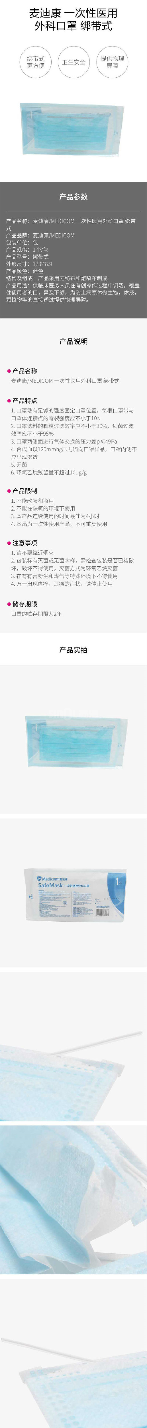 品 名: 麦迪康/MEDICOM 一次性医用外科口罩 (绑带式无菌)