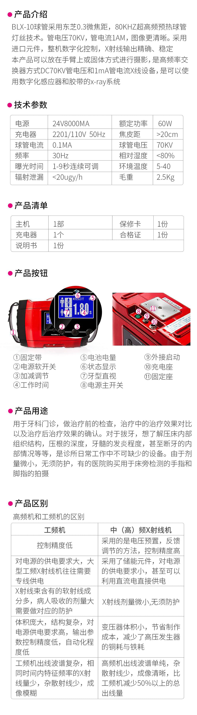 品 名: 微型牙科X射线机/便携式X光机BLX-10