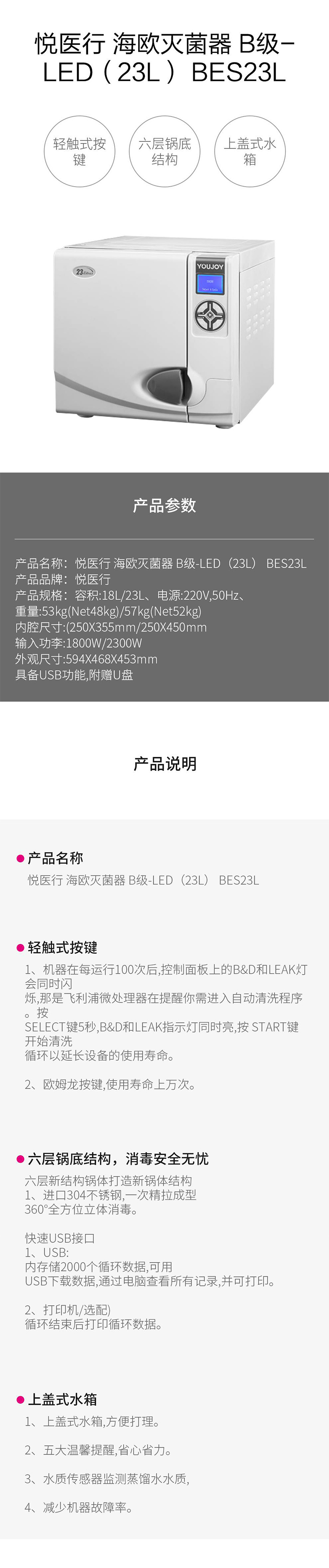 品 名: 悦医行 海欧灭菌器 B级-LED(23L)