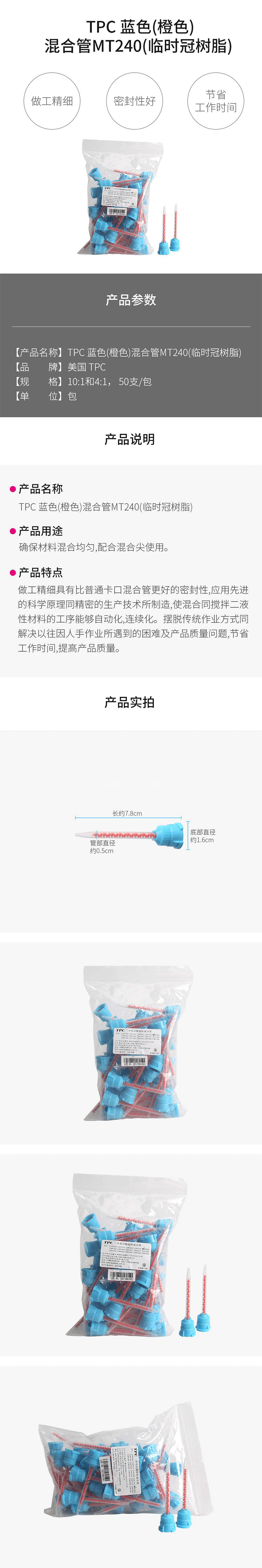 品 名: TPC 蓝色(橙色)混合管MT240(临时冠树脂)10:1/4:1