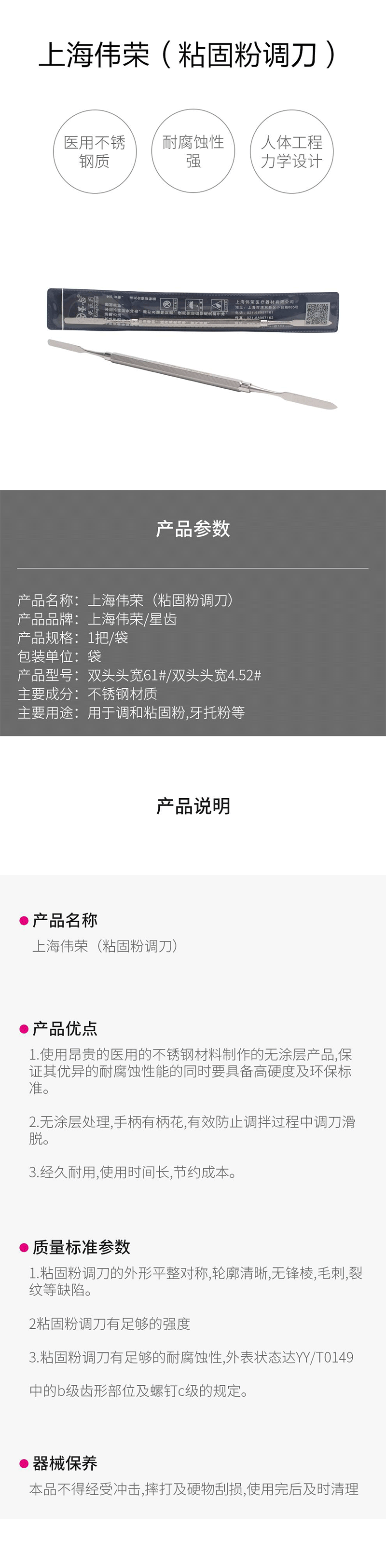 您选择的产品:上海伟荣/星齿 粘固粉调刀 2# 双头 头宽4.5